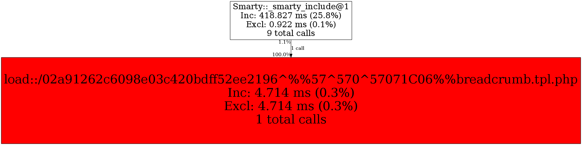 | Smarty::_smarty_include@1 | 1 | 100.0% | 4,714 | 100.0% | 0 | N/A% | 3,344 | 100.0% | 0 | N/A% |