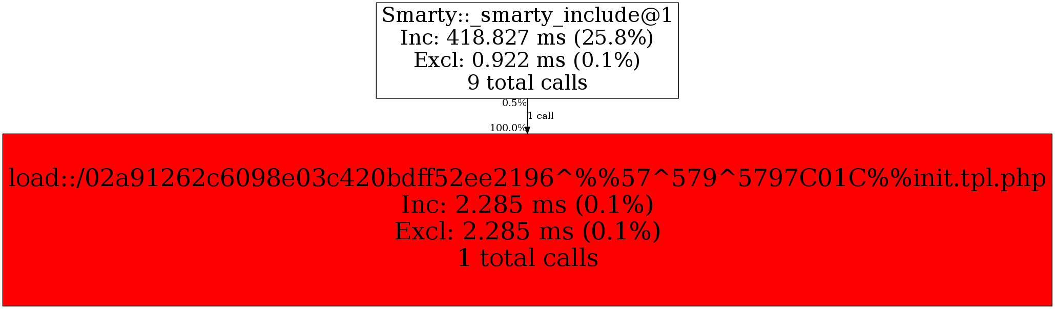| Smarty::_smarty_include@1 | 1 | 100.0% | 2,285 | 100.0% | 0 | N/A% | 3,336 | 100.0% | 0 | N/A% |