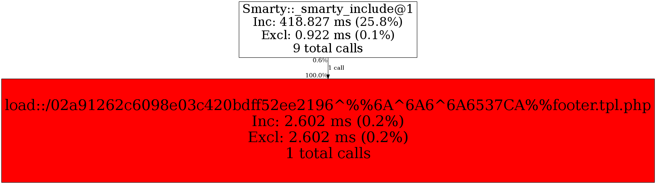 | Smarty::_smarty_include@1 | 1 | 100.0% | 2,602 | 100.0% | 0 | N/A% | 3,336 | 100.0% | 0 | N/A% |