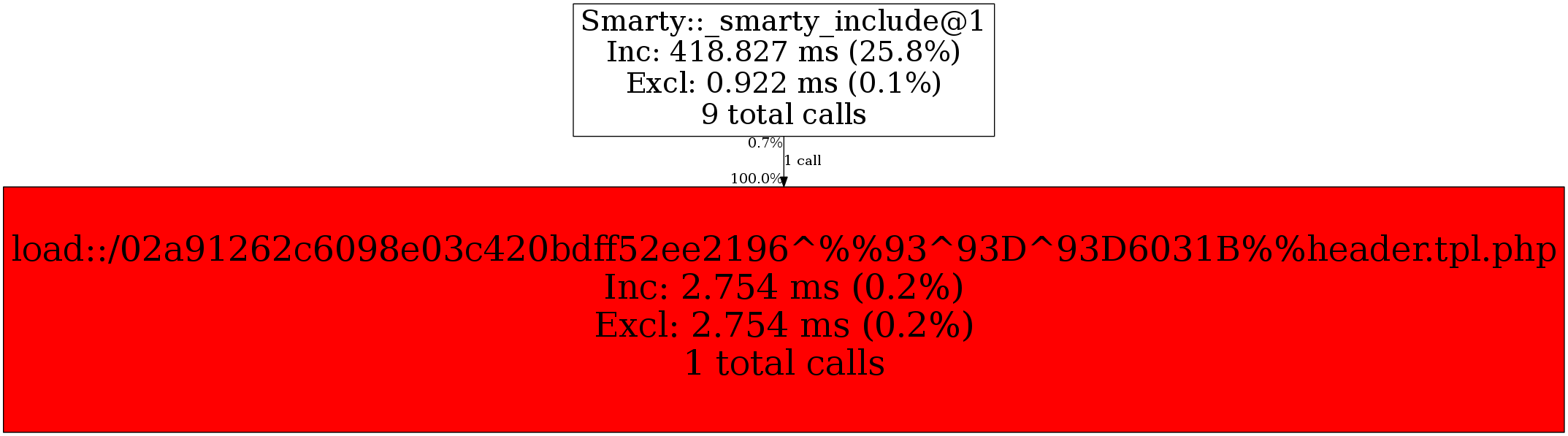 | Smarty::_smarty_include@1 | 1 | 100.0% | 2,754 | 100.0% | 0 | N/A% | 3,336 | 100.0% | 4,520 | 100.0% |