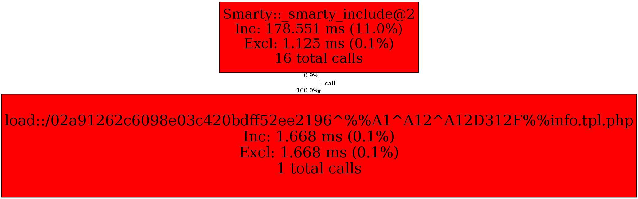 | Smarty::_smarty_include@2 | 1 | 100.0% | 1,668 | 100.0% | 0 | N/A% | 3,336 | 100.0% | 0 | N/A% |