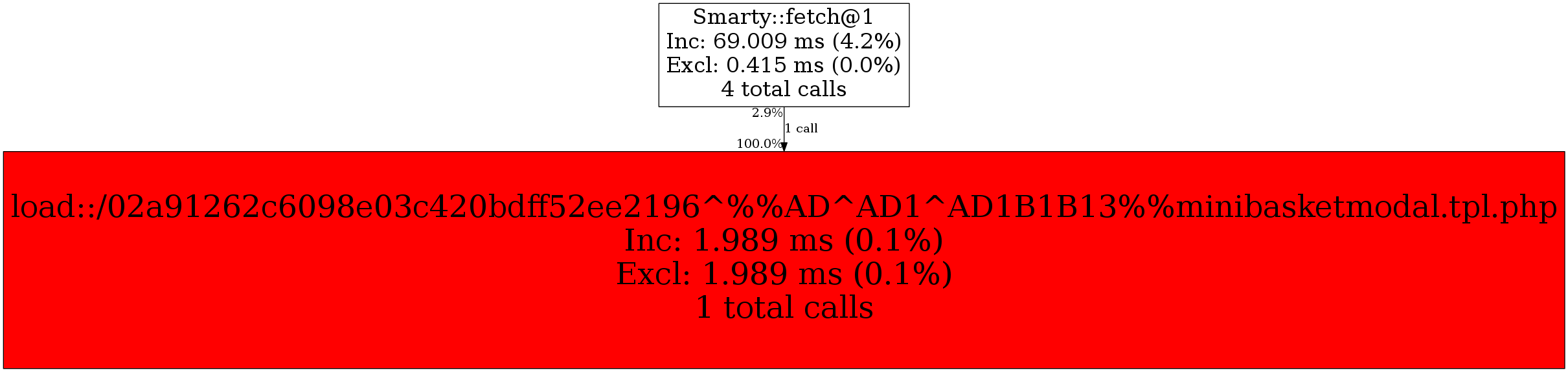 | Smarty::fetch@1 | 1 | 100.0% | 1,989 | 100.0% | 0 | N/A% | 3,376 | 100.0% | 0 | N/A% |