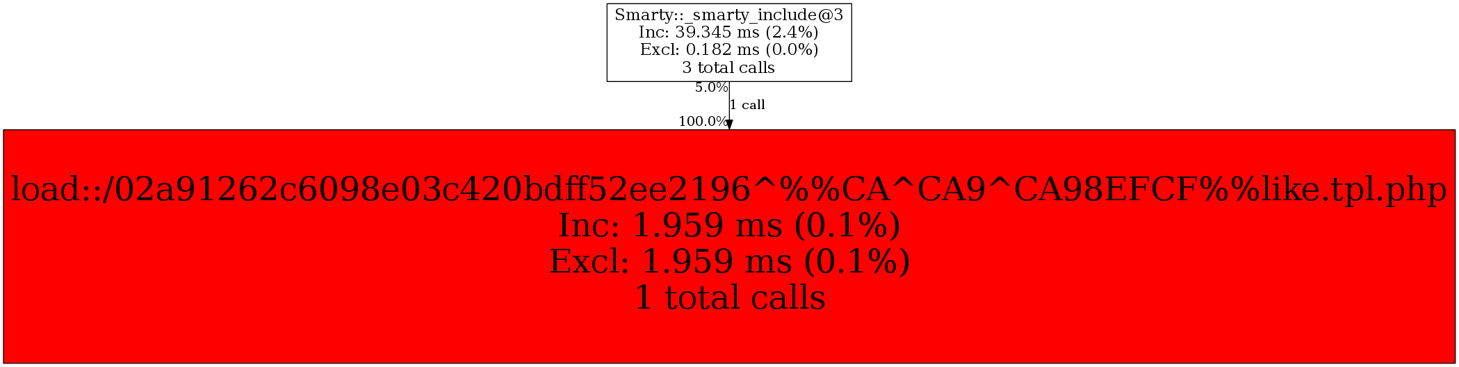 | Smarty::_smarty_include@3 | 1 | 100.0% | 1,959 | 100.0% | 0 | N/A% | 3,336 | 100.0% | 4,384 | 100.0% |