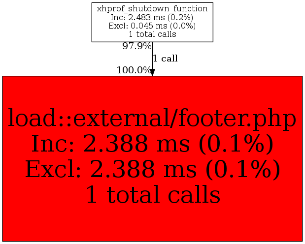 | xhprof_shutdown_function | 1 | 100.0% | 2,388 | 100.0% | 0 | N/A% | 3,016 | 100.0% | 0 | N/A% |