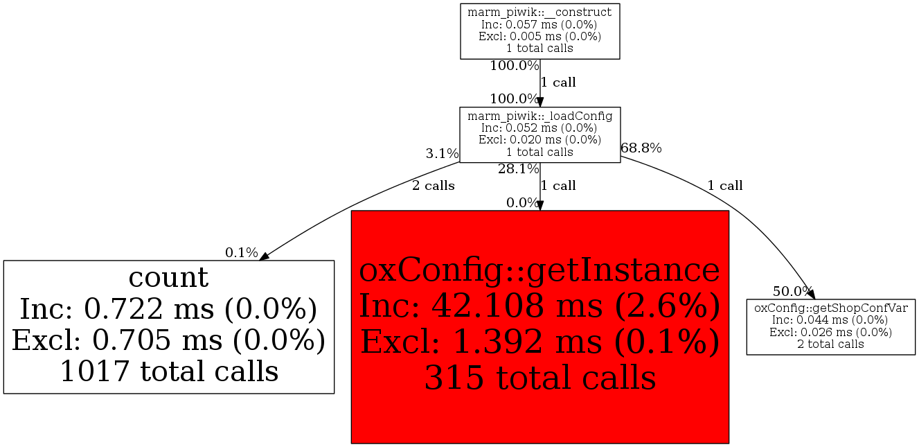 | marm_piwik::_loadConfig | 1 | 9.1% | 52 | 0.0% | 0 | 0.0% | 5,664 | 0.0% | 0 | 0.0% |
