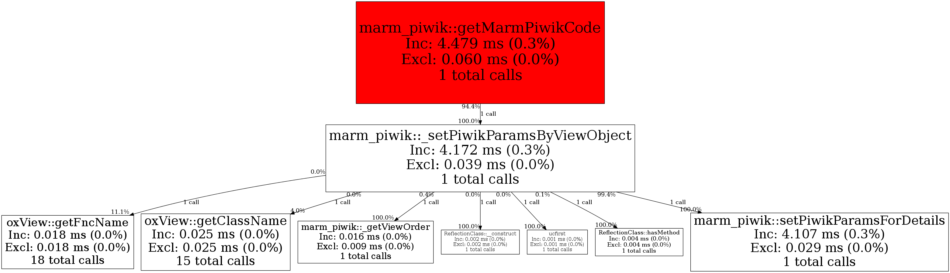 | marm_piwik::_setPiwikParamsByViewObject | 1 | 7.1% | 4,172 | 0.3% | 0 | 0.0% | 64,056 | 0.3% | 30,520 | 0.1% |