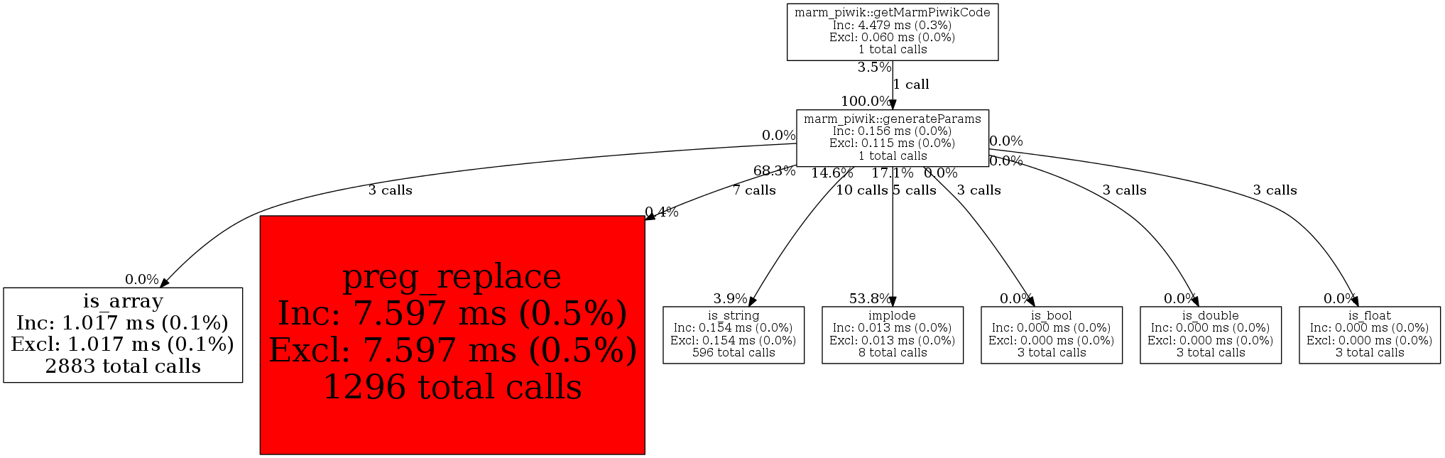 | marm_piwik::generateParams | 1 | 2.4% | 156 | 0.0% | 0 | 0.0% | 12,160 | 0.1% | 13,472 | 0.1% |