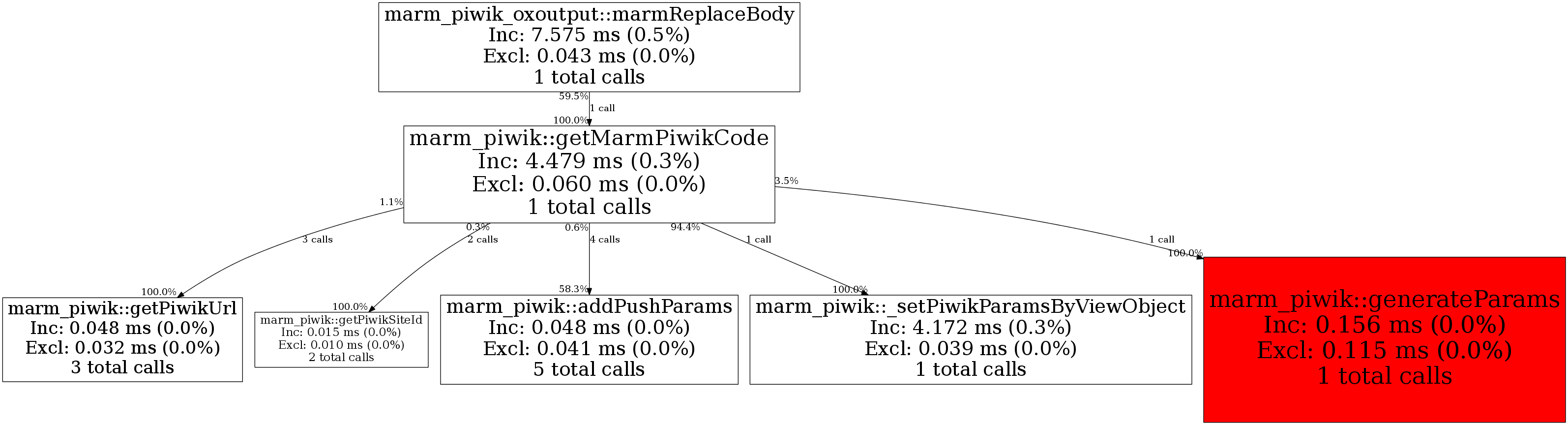 | marm_piwik::generateParams | 1 | 9.1% | 156 | 3.5% | 0 | N/A% | 12,160 | 12.7% | 13,472 | 28.4% |