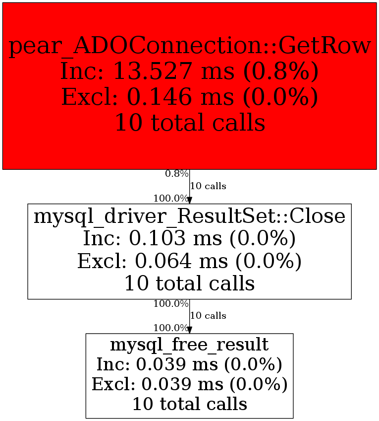 | pear_ADOConnection::GetRow | 10 | 100.0% | 103 | 100.0% | 0 | N/A% | -16,080 | -100.0% | 1,840 | 100.0% |