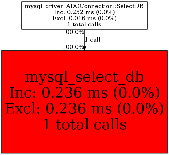 | mysql_driver_ADOConnection::SelectDB | 1 | 100.0% | 236 | 100.0% | 0 | N/A% | 1,120 | 100.0% | 0 | N/A% |