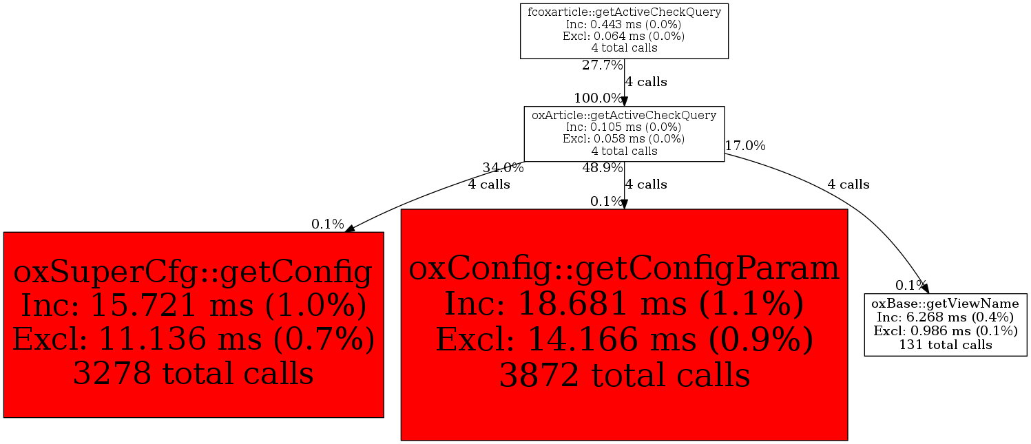 | fcoxarticle::getActiveCheckQuery | 4 | 100.0% | 105 | 100.0% | 0 | N/A% | 6,384 | 100.0% | 2,504 | 100.0% |