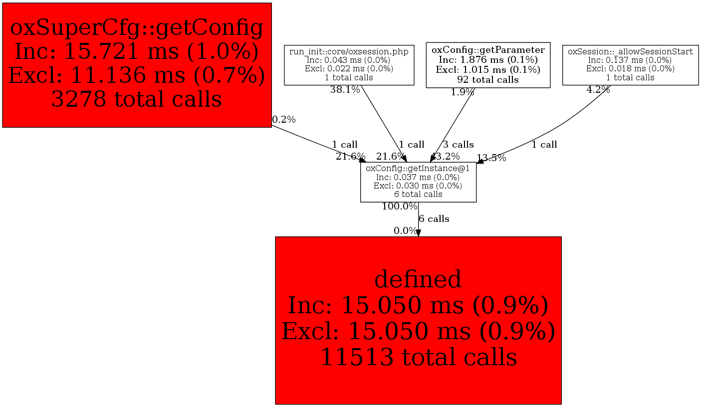 | oxConfig::getInstance@1 | 6 | 33.3% | 37 | 0.0% | 0 | 0.0% | 5,944 | 0.0% | 4,952 | 0.0% |