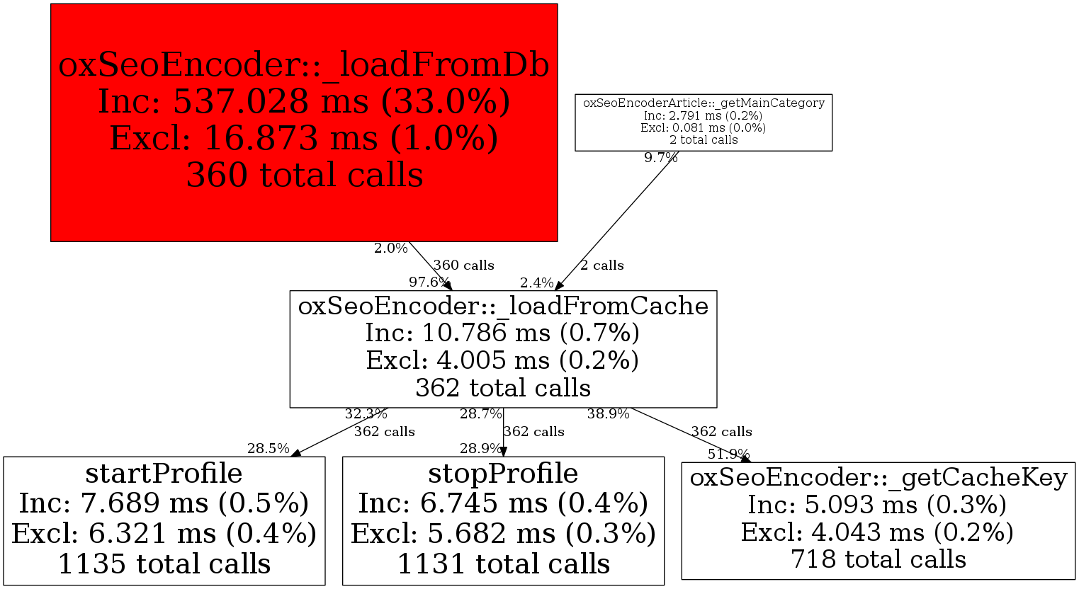 | oxSeoEncoder::_loadFromCache | 362 | 24.9% | 10,786 | 0.7% | 4,000 | 0.6% | 56,440 | 0.3% | 20,912 | 0.1% |