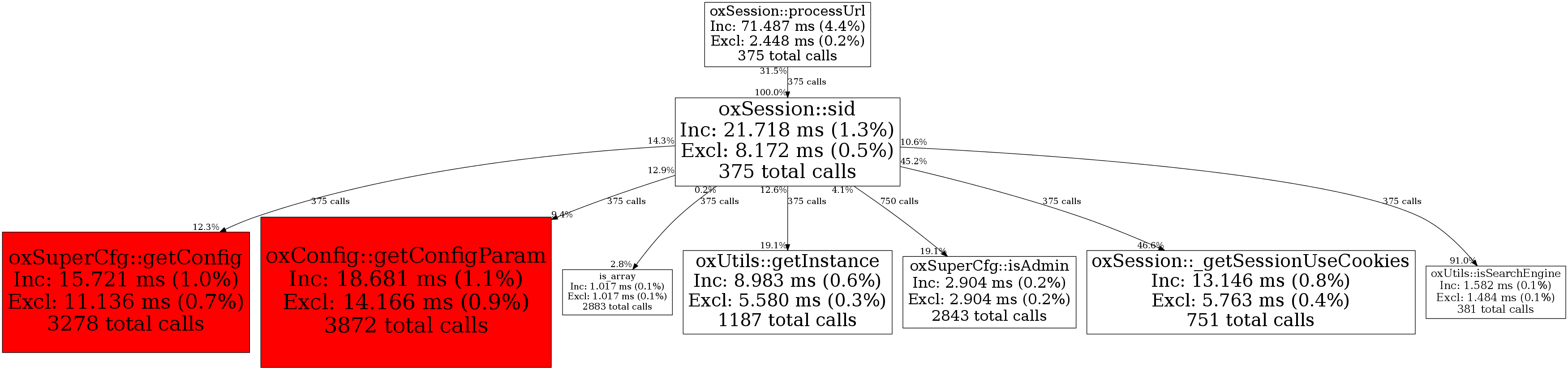 | oxSession::processUrl | 375 | 100.0% | 21,718 | 100.0% | 16,002 | 100.0% | 62,696 | 100.0% | 10,824 | 100.0% |