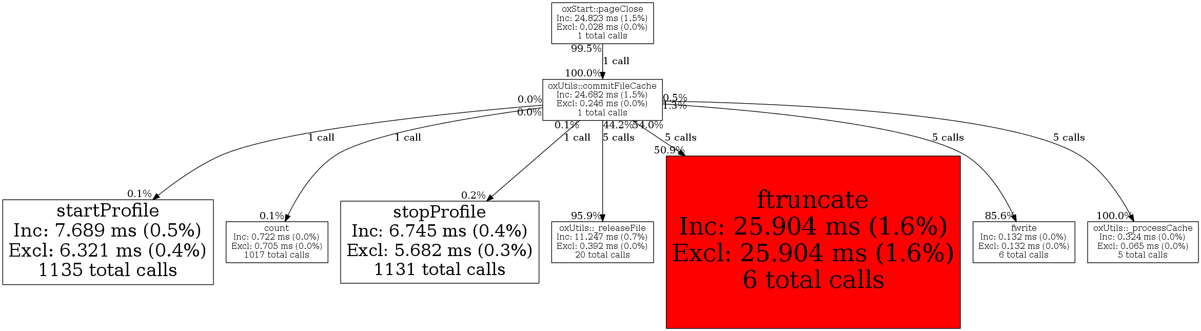 | oxUtils::commitFileCache | 1 | 3.3% | 24,682 | 1.5% | 0 | 0.0% | -88,968 | -0.4% | 0 | 0.0% |