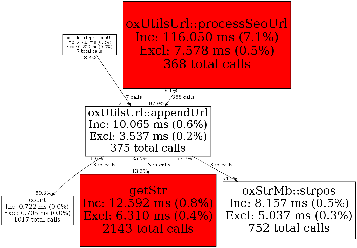| oxUtilsUrl::processUrl | 7 | 1.9% | 209 | 2.1% | 0 | 0.0% | 6,992 | 9.6% | 5,912 | 71.1% |