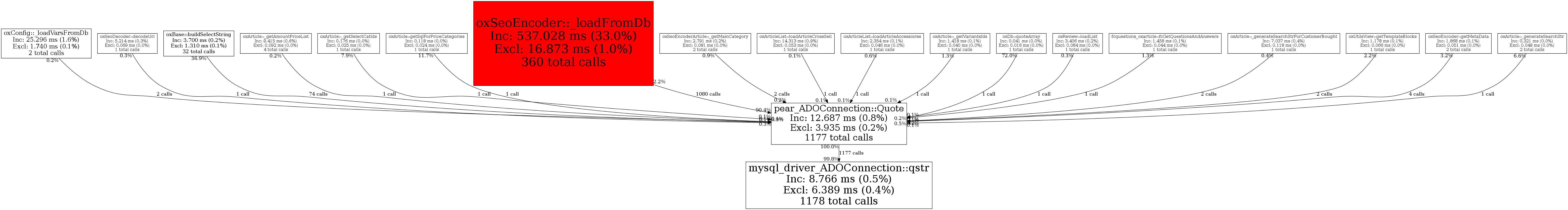 | oxSeoDecoder::decodeUrl | 1 | 0.1% | 17 | 0.1% | 0 | 0.0% | 1,280 | 0.7% | 1,288 | 9.3% |