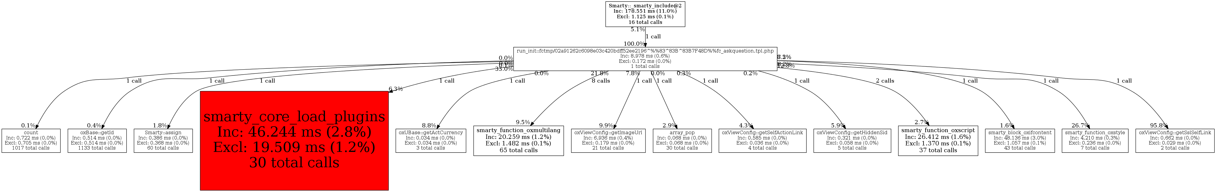 smarty_core_load_plugins1 4.5% 2,909 32.4% 4,001 50.0% 9,320 16.3% 7,904 7.7%