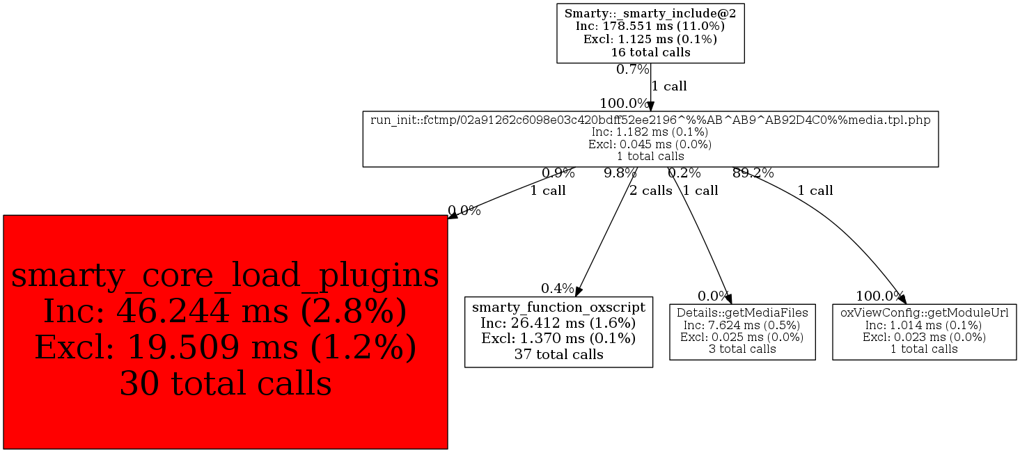 | Smarty::_smarty_include@2 | 1 | 100.0% | 1,182 | 100.0% | 0 | N/A% | 26,144 | 100.0% | 1,176 | 100.0% |