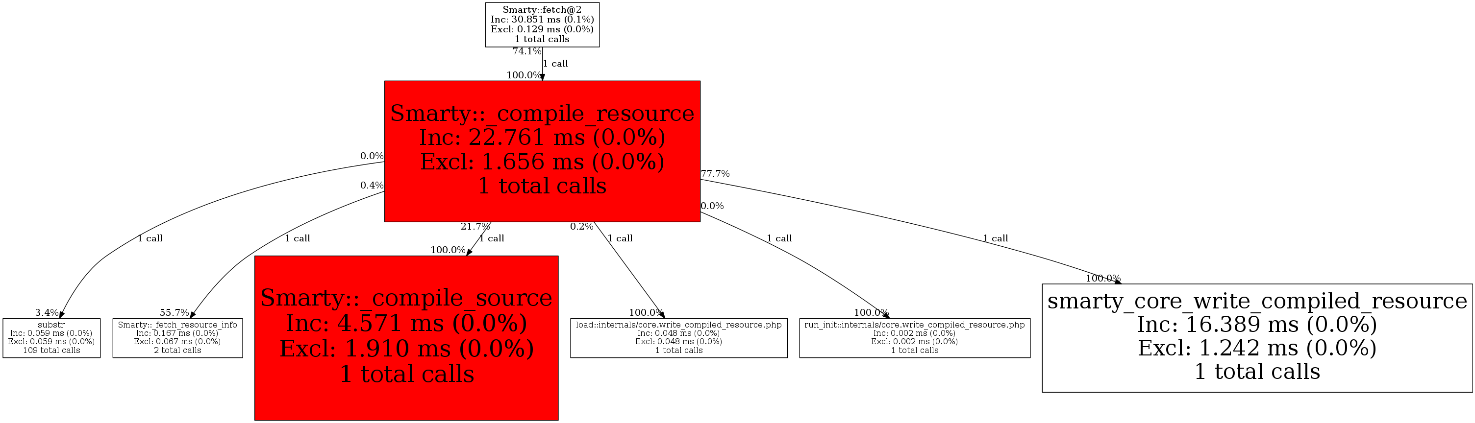 | Smarty::_fetch_resource_info | 1 | 16.7% | 93 | 0.4% | 0 | 0.0% | 7,616 | 3.5% | 4,960 | 2.3% |