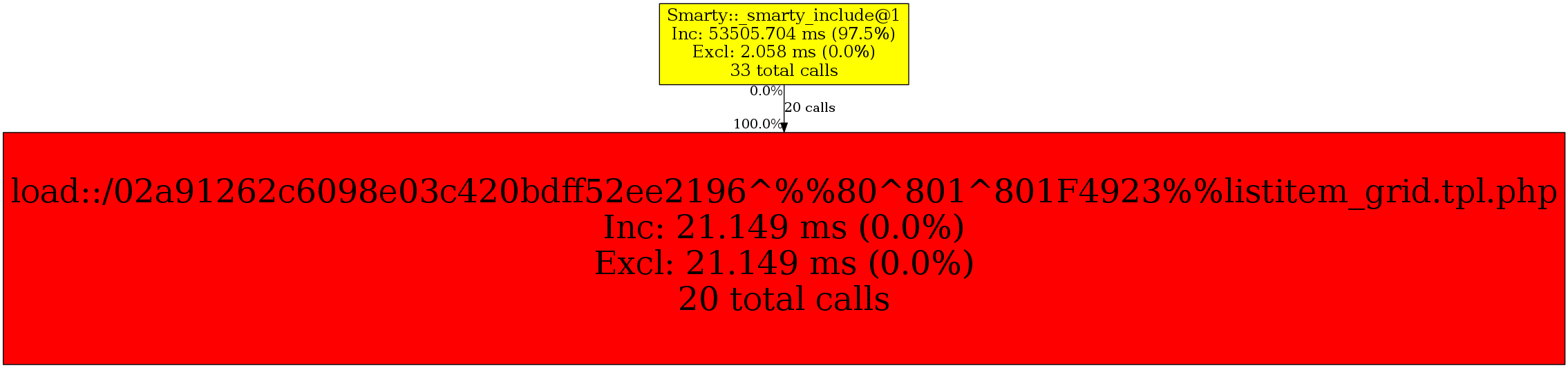 | Smarty::_smarty_include@1 | 20 | 100.0% | 21,149 | 100.0% | 0 | N/A% | 32,568 | 100.0% | 4,528 | 100.0% |