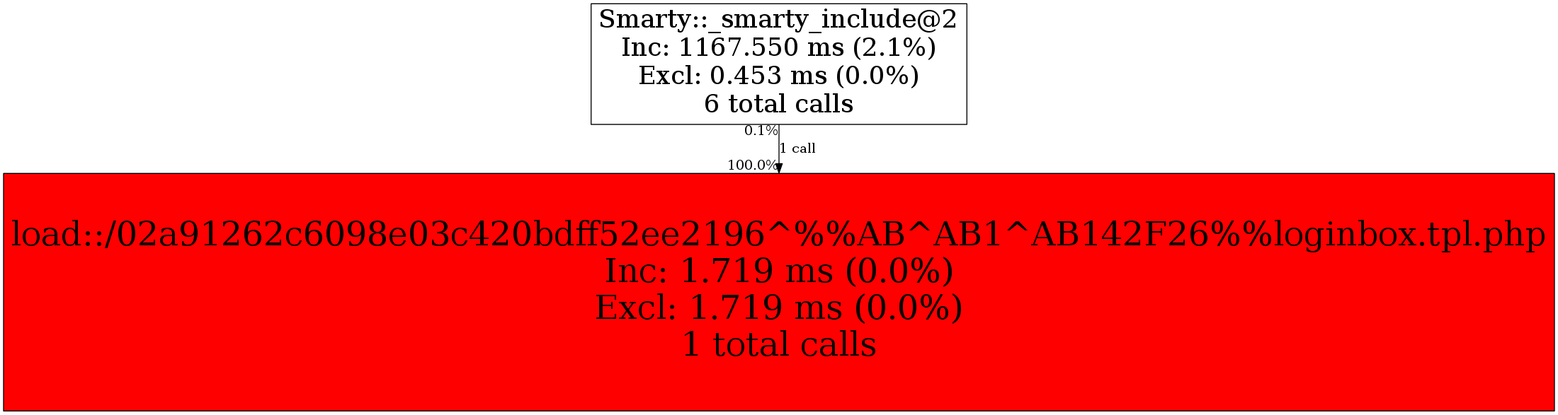 | Smarty::_smarty_include@2 | 1 | 100.0% | 1,719 | 100.0% | 0 | N/A% | 3,336 | 100.0% | 4,520 | 100.0% |
