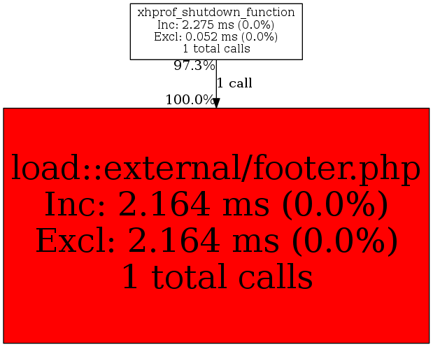 | xhprof_shutdown_function | 1 | 100.0% | 2,164 | 100.0% | 0 | N/A% | 2,984 | 100.0% | 0 | N/A% |