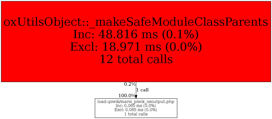 | oxUtilsObject::_makeSafeModuleClassParents | 1 | 100.0% | 65 | 100.0% | 0 | N/A% | 17,712 | 100.0% | 14,688 | 100.0% |