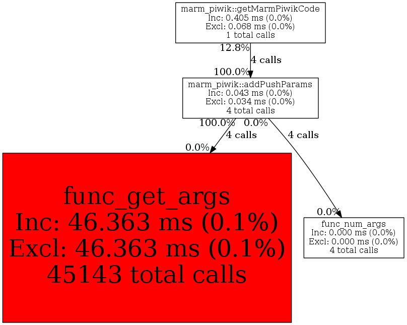 | marm_piwik::addPushParams | 4 | 22.2% | 43 | 0.0% | 0 | 0.0% | 8,144 | 0.0% | 0 | 0.0% |