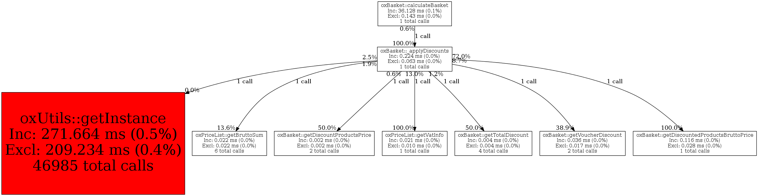 | oxBasket::_applyDiscounts | 1 | 7.1% | 224 | 0.0% | 0 | 0.0% | 24,528 | 0.1% | 24,048 | 0.0% |