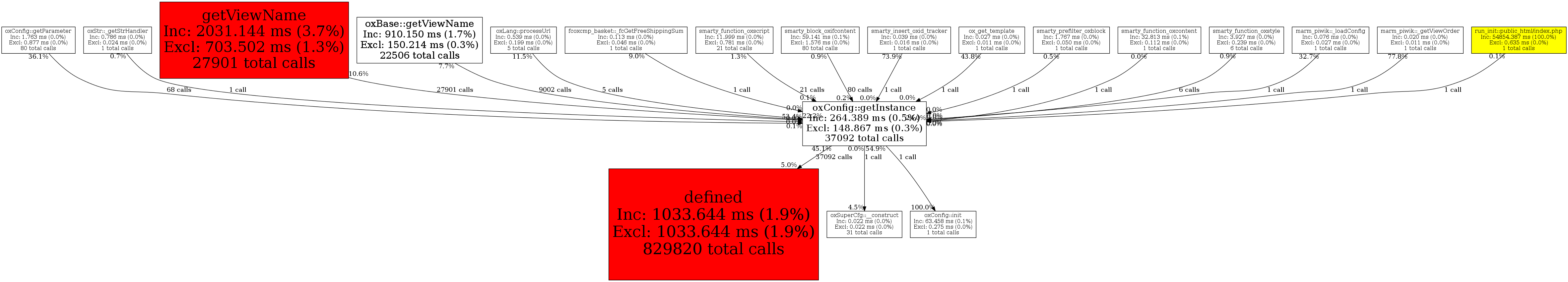 | oxConfig::init | 1 | 0.0% | 63,458 | 24.0% | 20,001 | 7.7% | 1,970,160 | 98.8% | 1,977,568 | 99.0% |