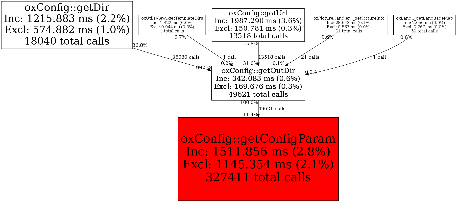 | oxConfig::getConfigParam | 49,621 | 100.0% | 172,407 | 50.4% | 232,012 | 58.6% | 1,104 | 0.0% | 3,424 | 38.7% |