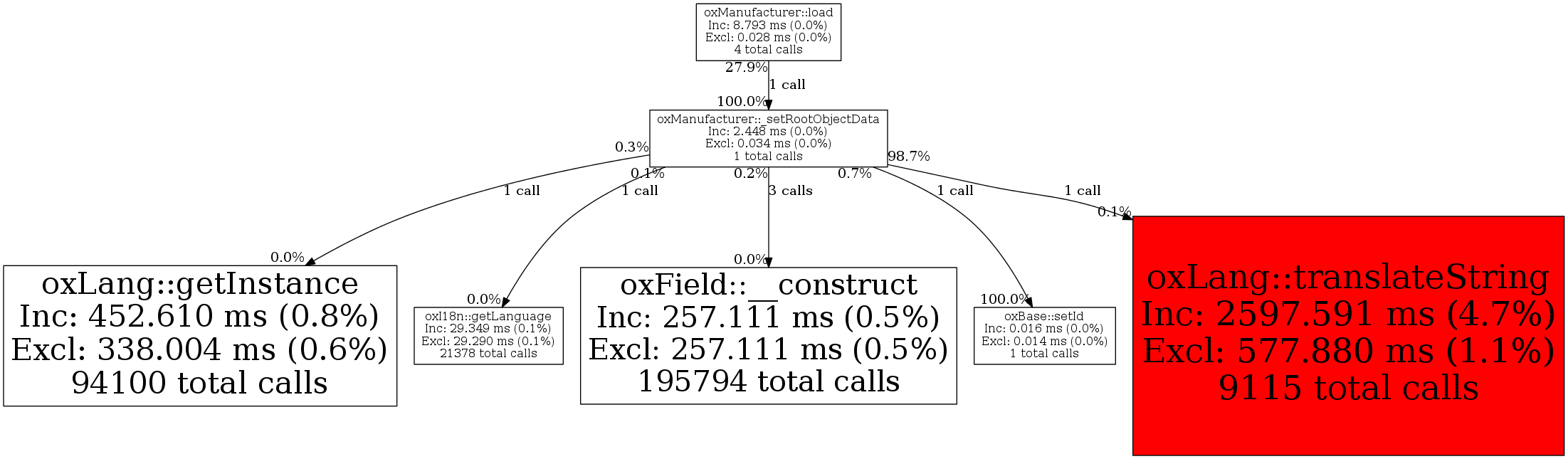 | oxLang::getInstance | 1 | 14.3% | 8 | 0.3% | 0 | 0.0% | 1,112 | 0.3% | 0 | 0.0% |