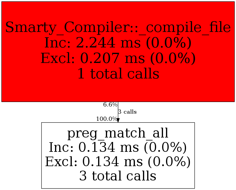 | Smarty_Compiler::_compile_file | 3 | 100.0% | 134 | 100.0% | 0 | N/A% | 3,528 | 100.0% | 1,792 | 100.0% |