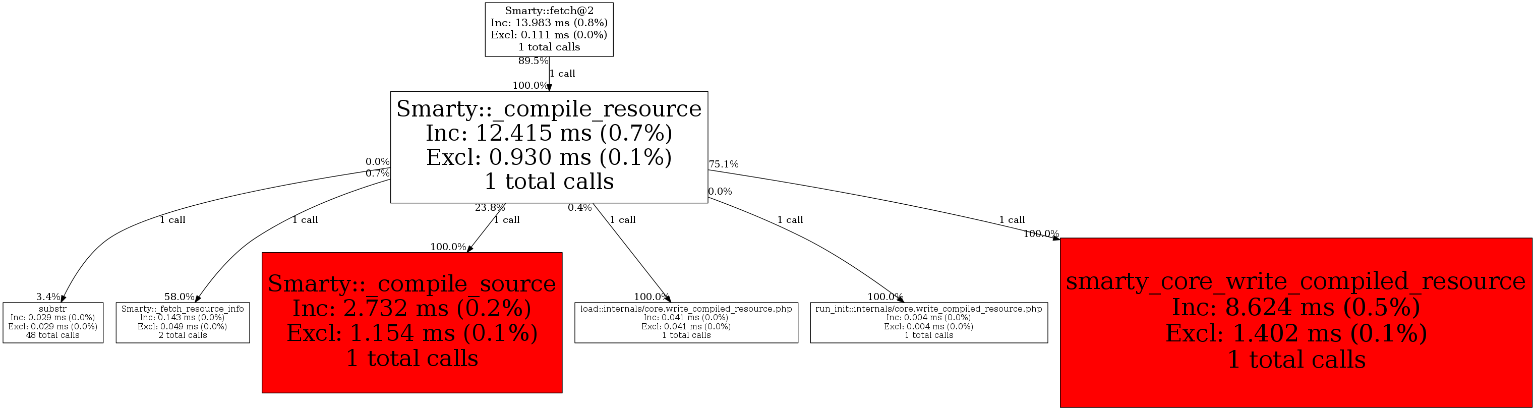 | Smarty::_fetch_resource_info | 1 | 16.7% | 83 | 0.7% | 0 | 0.0% | 7,616 | 3.3% | 4,960 | 2.1% |