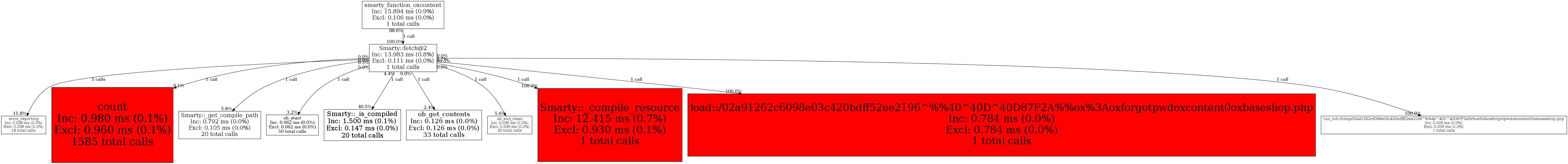 | Smarty::fetch@2 | 1 | 1.9% | 13,983 | 0.8% | 4,000 | 0.4% | 262,888 | 1.1% | 286,504 | 1.1% |
