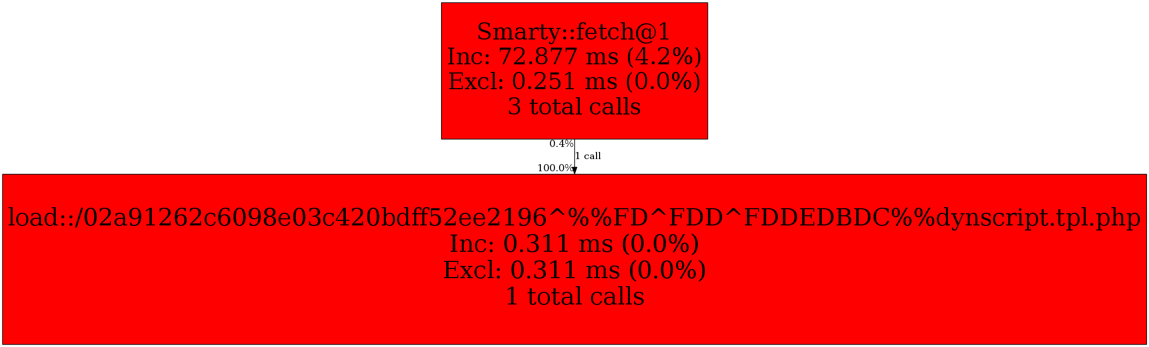 | Smarty::fetch@1 | 1 | 100.0% | 311 | 100.0% | 0 | N/A% | 3,328 | 100.0% | 0 | N/A% |