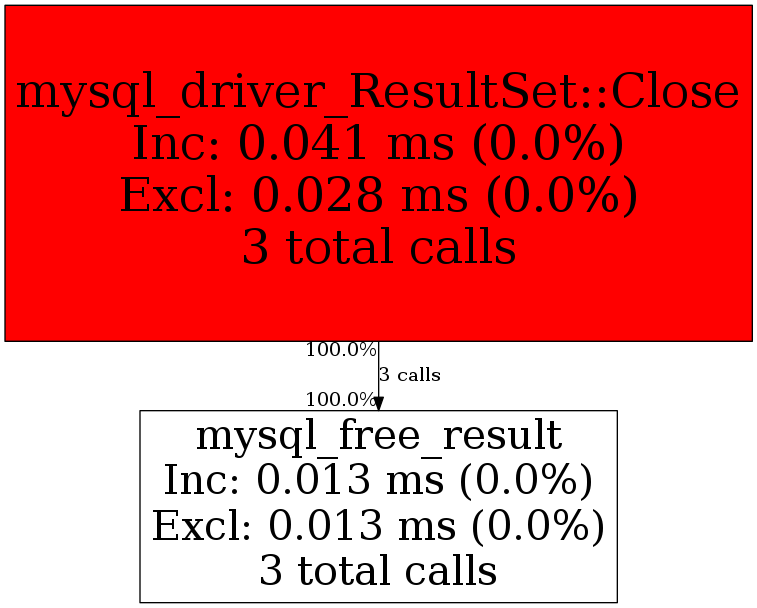| mysql_driver_ResultSet::Close | 3 | 100.0% | 13 | 100.0% | 0 | N/A% | -4,632 | -100.0% | 0 | N/A% |
