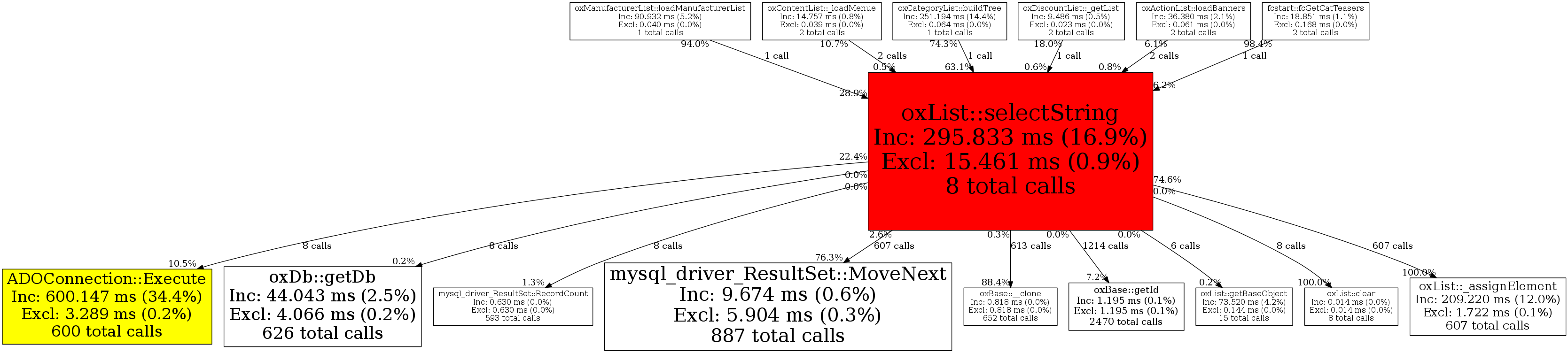 | oxList::selectString | 8 | 0.3% | 295,833 | 16.9% | 244,016 | 26.6% | 11,434,680 | 46.3% | 11,456,536 | 45.6% |
