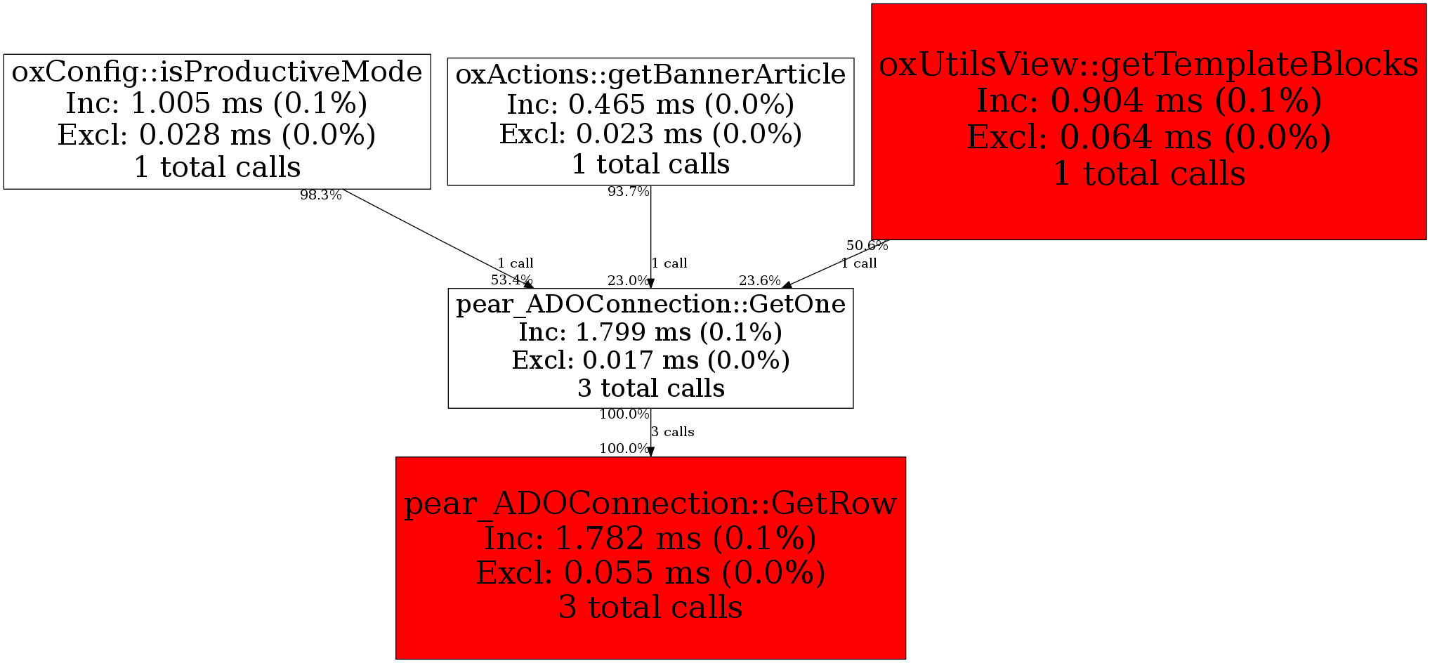 | pear_ADOConnection::GetRow | 3 | 100.0% | 1,782 | 99.1% | 0 | N/A% | 6,944 | 64.9% | 21,752 | 96.3% |