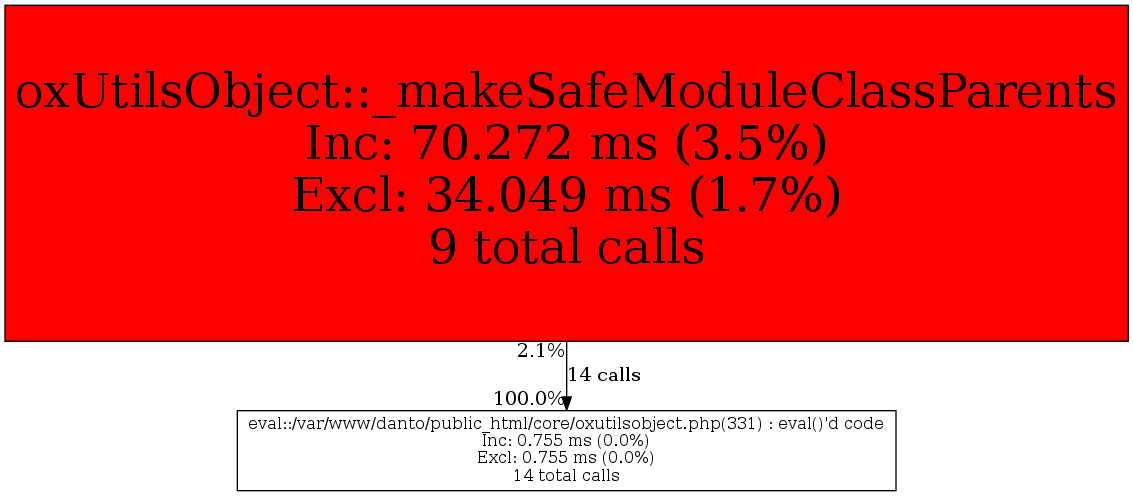 | oxUtilsObject::_makeSafeModuleClassParents | 14 | 100.0% | 755 | 100.0% | 0 | N/A% | 488,208 | 100.0% | 582,480 | 100.0% |
