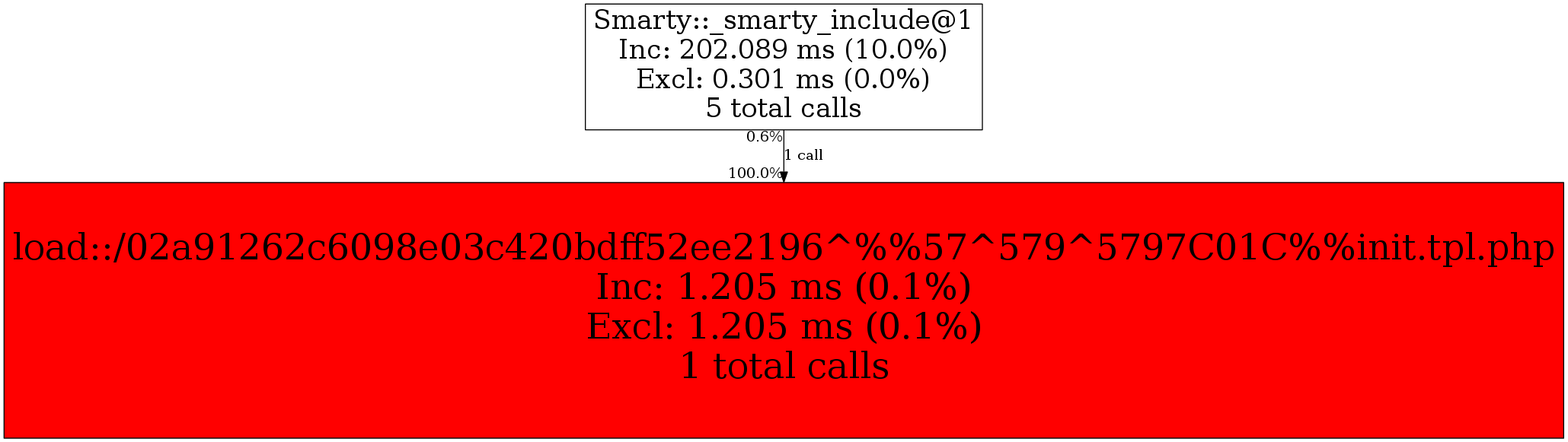 | Smarty::_smarty_include@1 | 1 | 100.0% | 1,205 | 100.0% | 0 | N/A% | 3,336 | 100.0% | 0 | N/A% |