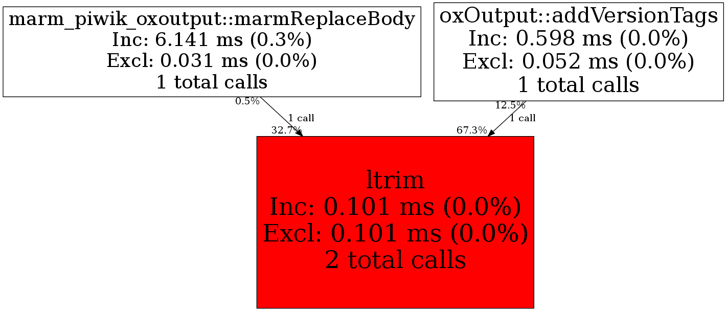 | marm_piwik_oxoutput::marmReplaceBody | 1 | 50.0% | 33 | 32.7% | 0 | N/A% | 102,032 | 49.7% | 43,280 | 100.0% |