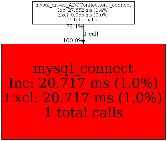 | mysql_driver_ADOConnection::_connect | 1 | 100.0% | 20,717 | 100.0% | 0 | N/A% | 8,520 | 100.0% | 8,632 | 100.0% |