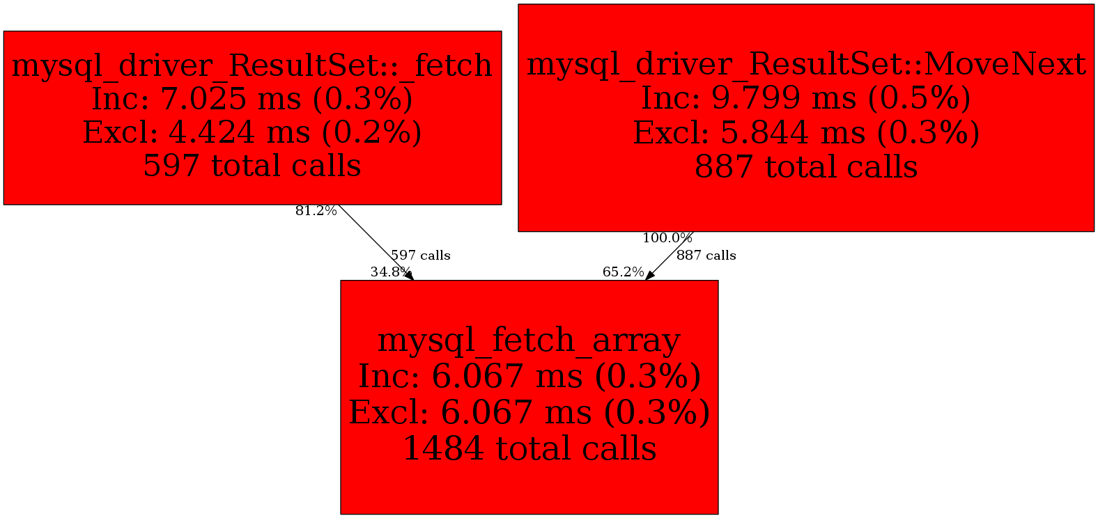 | mysql_driver_ResultSet::MoveNext | 887 | 59.8% | 3,955 | 65.2% | 4,000 | 100.0% | 2,079,680 | 74.0% | 453,752 | 84.2% |