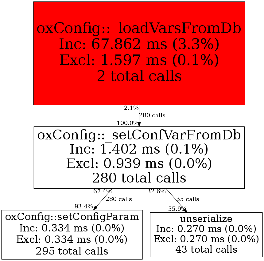 | oxConfig::_loadVarsFromDb | 280 | 100.0% | 1,402 | 100.0% | 0 | N/A% | 133,024 | 100.0% | 183,208 | 100.0% |