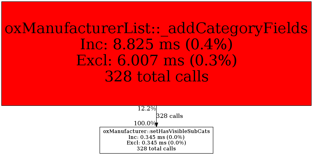 | oxManufacturer::setHasVisibleSubCats | 328 | 89.4% | 345 | 0.0% | 0 | 0.0% | 1,136 | 0.0% | 0 | 0.0% |
