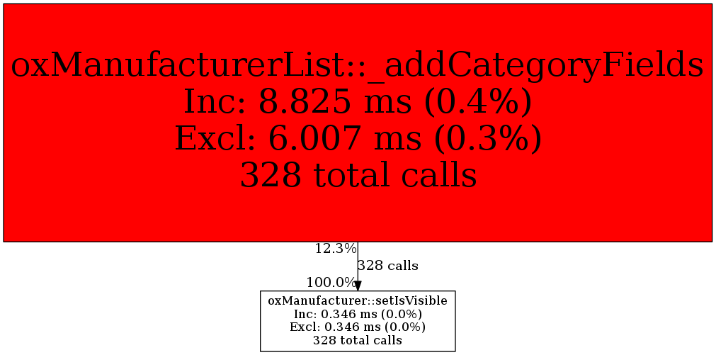 | oxManufacturerList::_addCategoryFields | 328 | 100.0% | 346 | 100.0% | 0 | N/A% | 1,128 | 100.0% | 0 | N/A% |