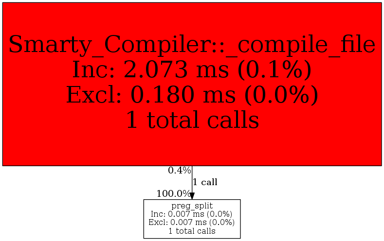 | Smarty_Compiler::_compile_file | 1 | 100.0% | 7 | 100.0% | 0 | N/A% | 2,592 | 100.0% | 1,280 | 100.0% |