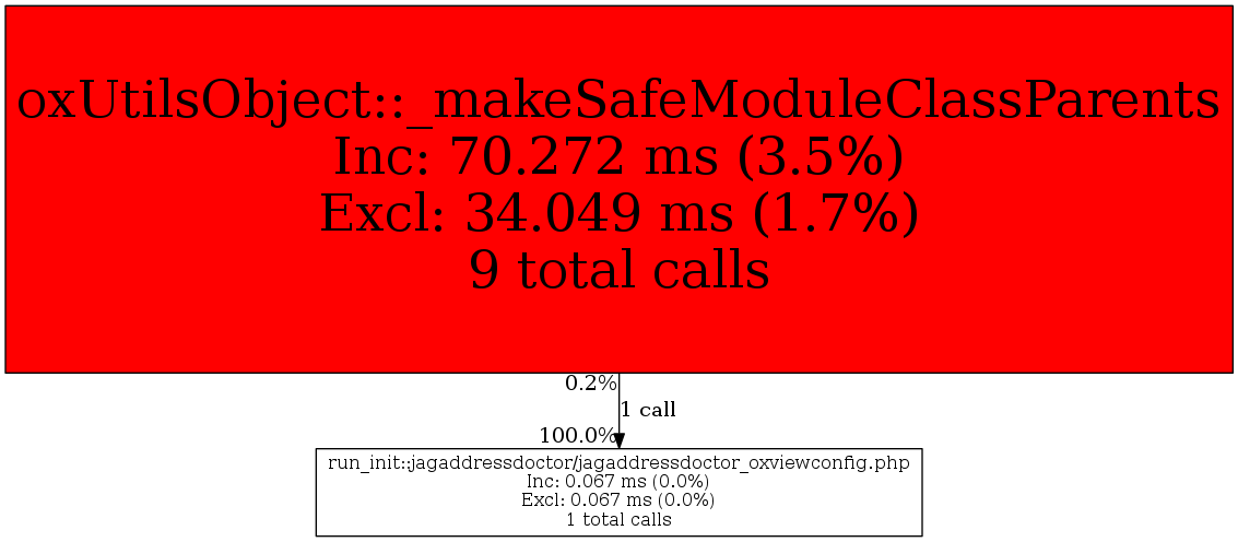 | oxUtilsObject::_makeSafeModuleClassParents | 1 | 100.0% | 67 | 100.0% | 0 | N/A% | 45,760 | 100.0% | 38,992 | 100.0% |